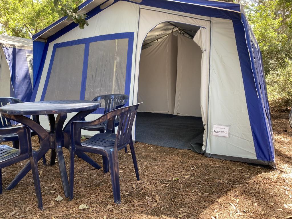 Geschlafen wird in geräumigen Vier-Personen-Zelten mit rund 20 Quadratmetern Fläche. Die Zelte sind in Schlafkabinen unterteilt und mit bequemen Velourbetten ausgestattet – damit auch nach aktiven Tagen am Meer ausreichend Erholung möglich ist.